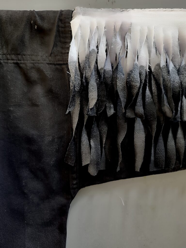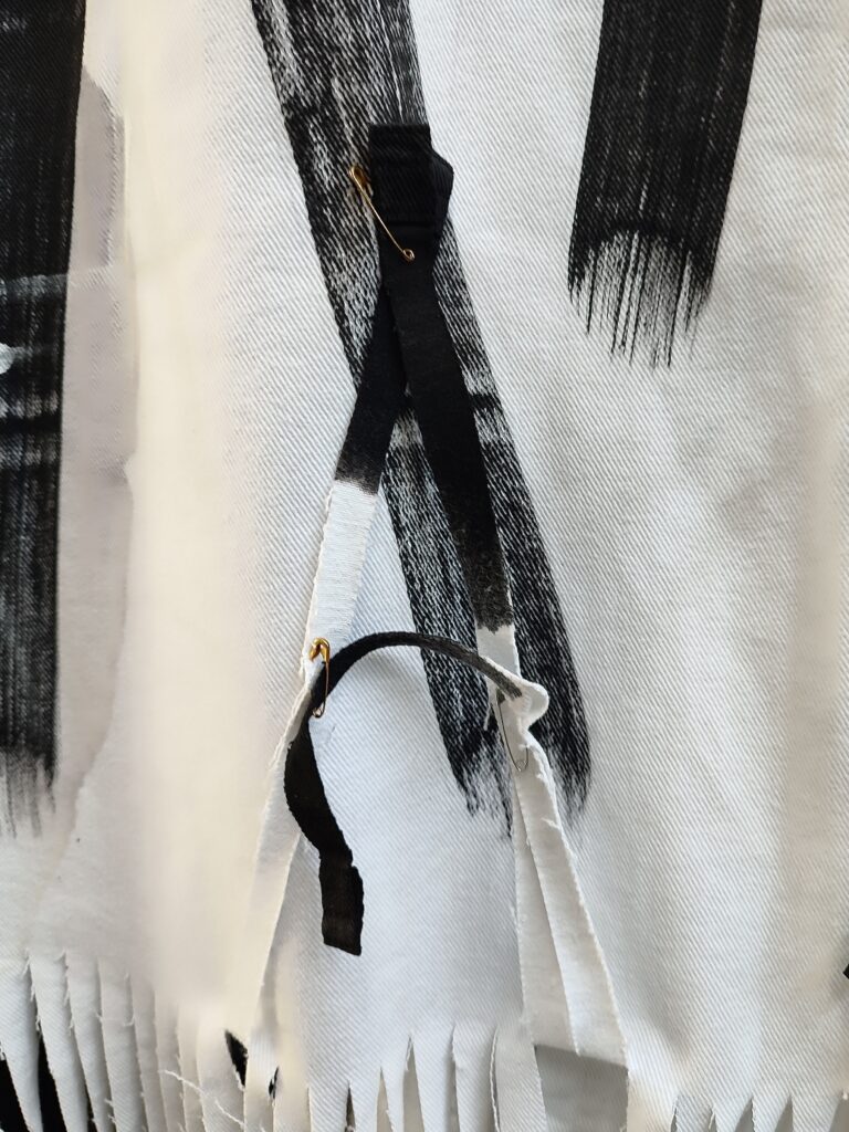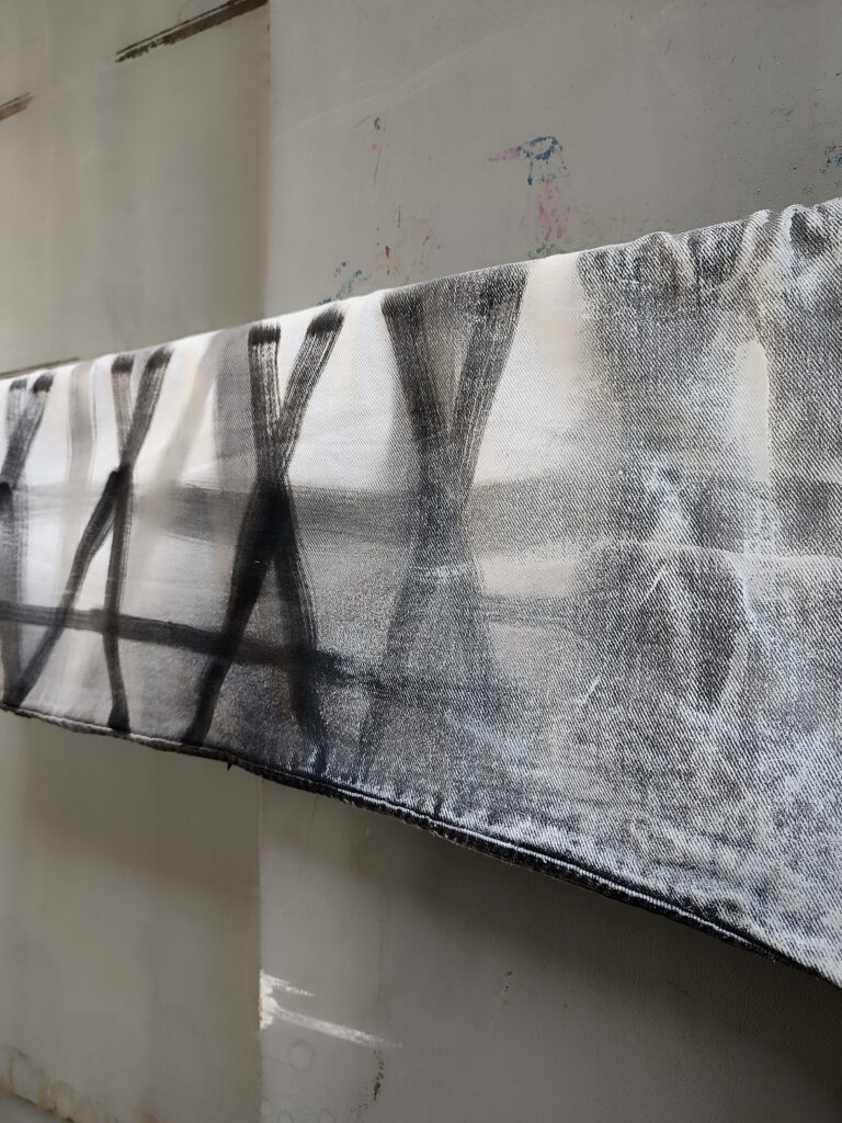En juin 2025, j’ai l’opportunité de pouvoir rejoindre l’association collégiale Les 8 Pillards dans l’ancienne usine métallurgique Pillard. Étant donné l’histoire du lieu et le contexte politico social actuel, il s’est imposé à moi, en y installant mon atelier, de me concentrer à nouveau sur la série Tenues de combat. Les 8 dernières pièces de la série ont été réalisées depuis là et participent de l’installation Un grand fou rire avant de partir, une installation in situ, conçue pour La Finale – dernière fête des 8 Pillards (20/09/2025), avant notre départ fixé au 31/10/2025.
