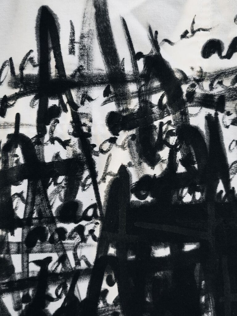 La série découle de premières recherches picturales menées sur des chemises d’homme blanches recyclées et peintes, en préparation du projet Porte mots, à destination d’un groupe de détenus du Centre pénitentiaire de Marseille Baumettes (Porte mots, soutien FRAC SUD, 2021) et qui sera d’abord développé la même année, dans le cadre d’une résidence Rouvrir Le Monde à Coco Velten (partenariat Yes We Camp, projet soutenu par la DRAC PACA). C’est pendant cette résidence, que les premières « tenues de combat » sont réalisées, conjointement à d’autres peintures sur textiles recyclés. Elles participent de l’action dans l’espace public – Porte mots. Acte I, Marseille, 04/12/2021